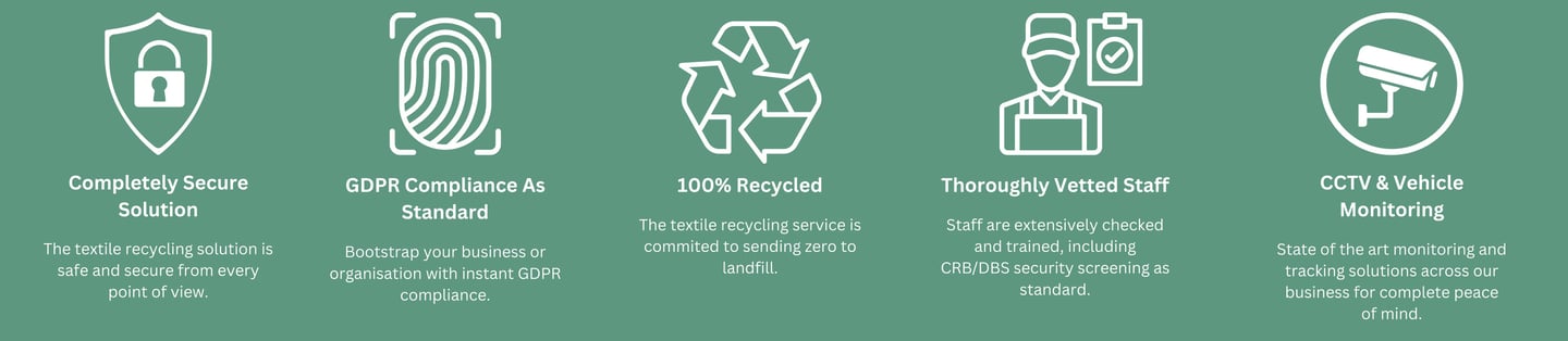 Businesses throughout the UK trust this service due to the focus on security and protection when it comes to disposing of uniforms and branded textiles safely and securely.